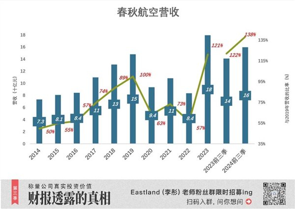 自2014年到2024年前三季,春秋航空净利润累计58.5亿;