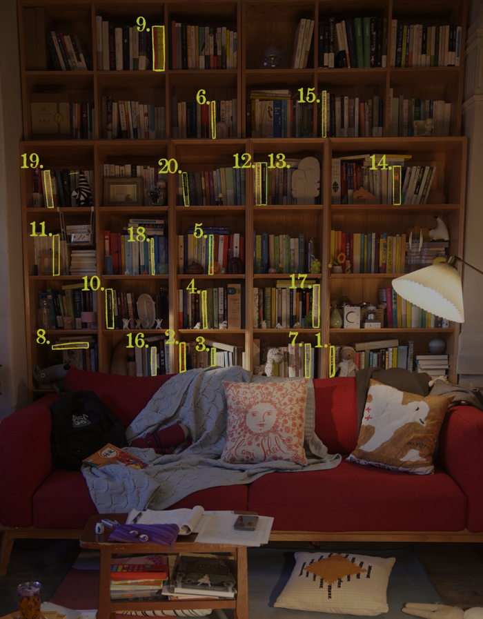 ● 电影中王铁梅的书柜以及以下20本书在其中的位置