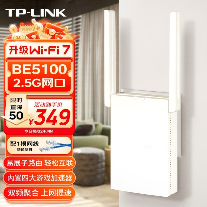 TP-LINK 普联 BE5100双频千兆WiFi7 无线路由器349元秒杀