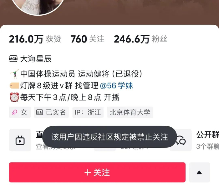 目前,吴柳芳的账号因“违反社区规定”禁止被关注,其个人作品也从58条删除到7条,删掉的作品主要是性感热舞视频,留下来的作品中都穿着严实。