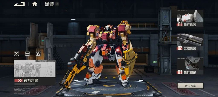 过去《前线任务》本就是这类自定义化机体游戏中的翘楚。通过将机兵部件按功能分为了不同模块,玩家可以自由搭配机兵的各个部位,以及配套的武器和背包等等配件。《钢岚》在延续这套机体搭配的玩法上,通过游戏内琳琅满目的涂装颜色以及图案,让玩家能够在外观上拥有更多的选择和搭配,单独拎出来甚至可以作为一个机兵换装小游戏。许多玩家会通过《钢岚》自由度极高的机兵涂装功能cos一些知名机器人,或是潜心研究色彩搭配,让自己的机兵成为战场上最亮眼的那个。