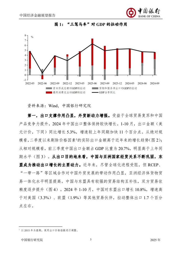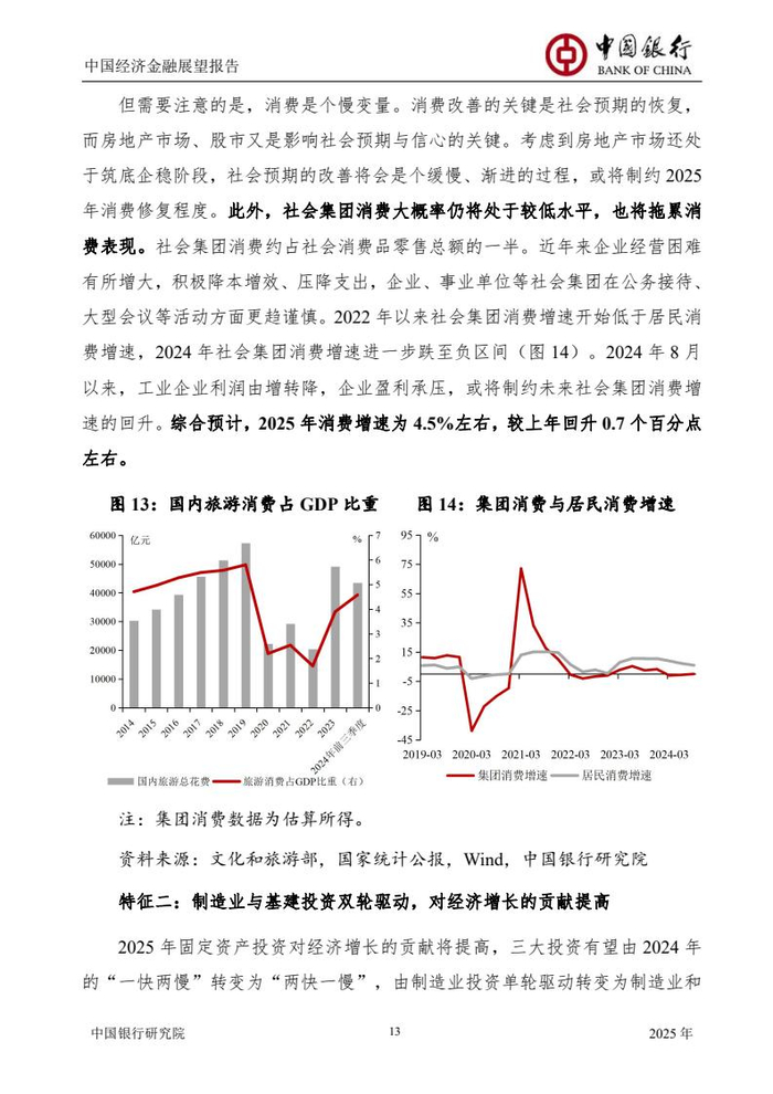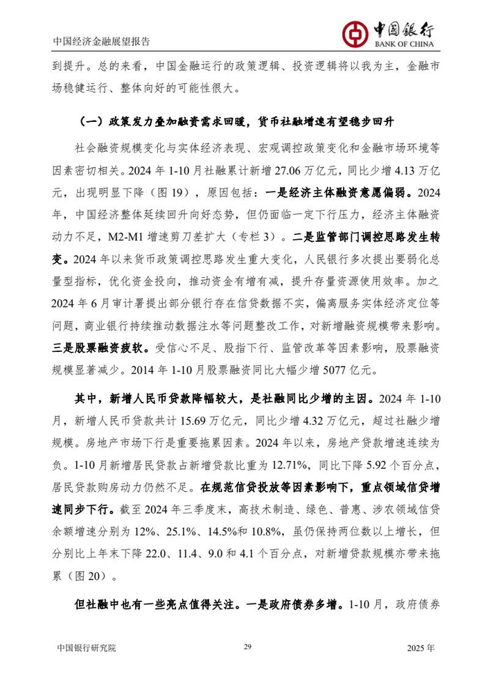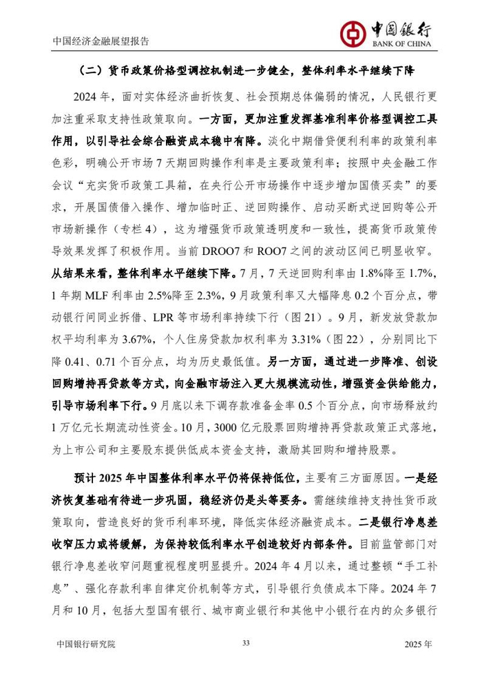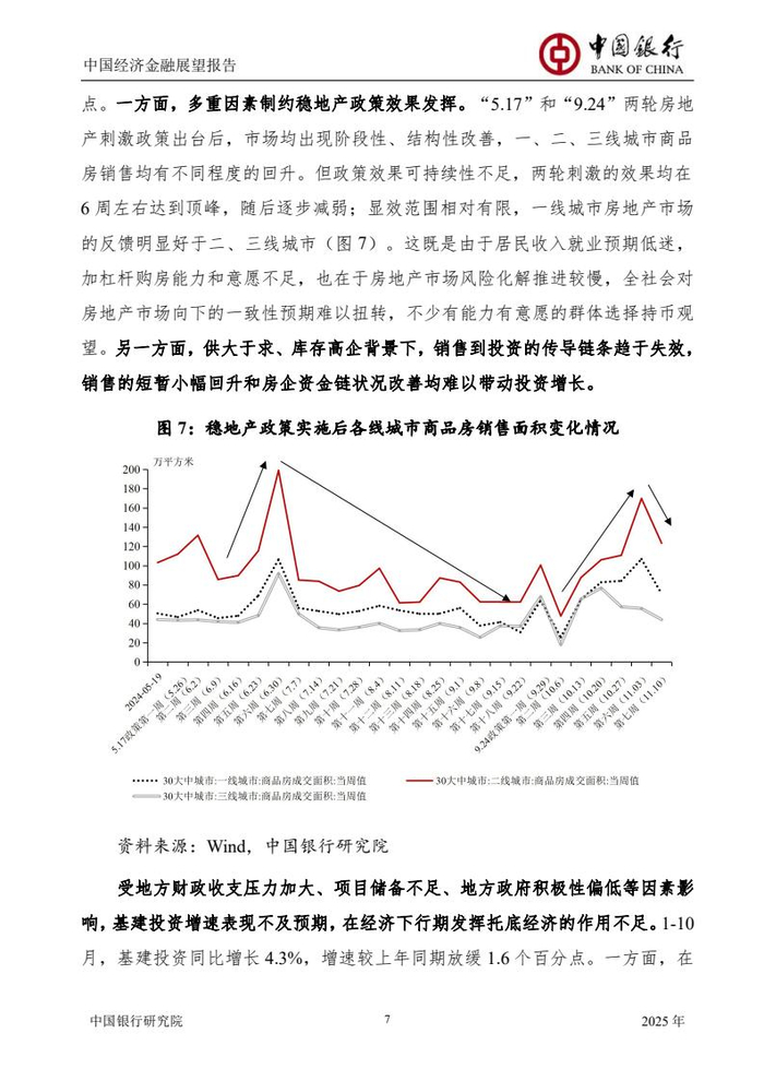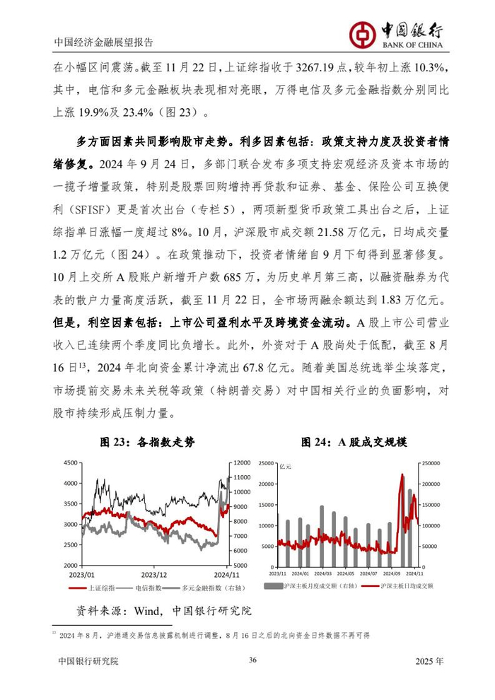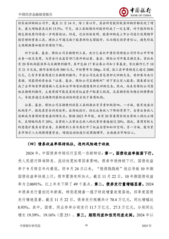 2024年,中国经济总体平稳运行,全年呈现“v”字型走势。前三季度经济景气逐季走弱,9月份以来,一揽子稳经济增量政策加力推出,诸多领域出现积极变化。但当前经济回升基础还不牢固,外需支撑难以抵补内需不足,新兴产业发展难以抵补房地产等传统产业拖累,经济结构性、周期性转换过程中的多重阵痛依然明显。初步预计,全年GDP增长5%左右。