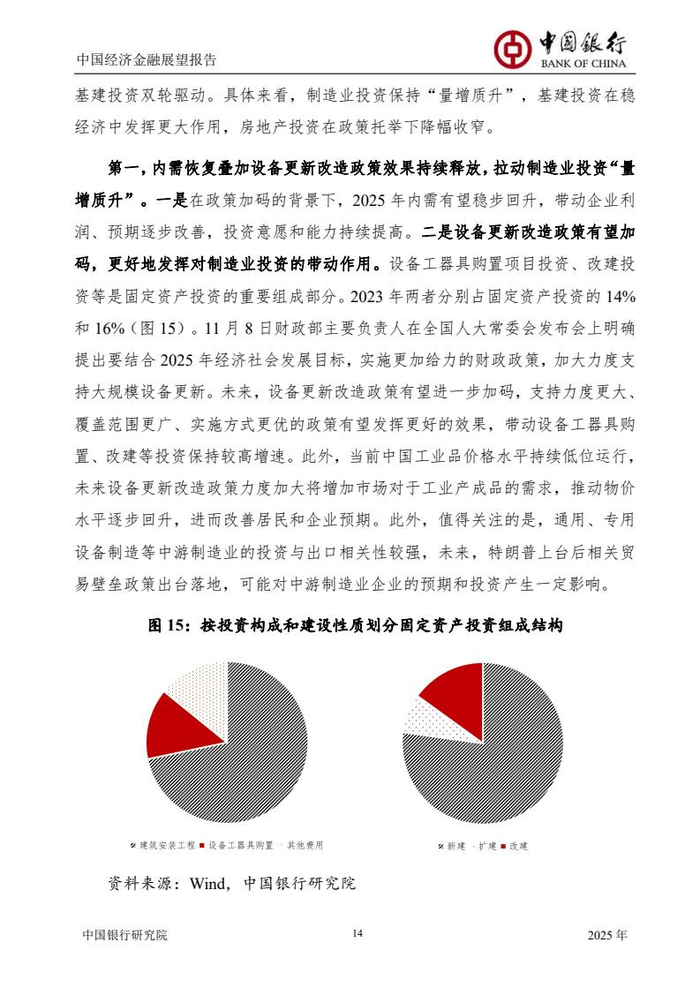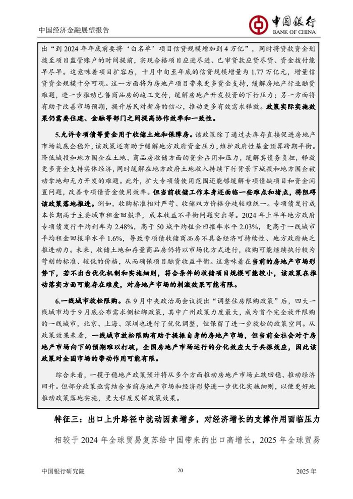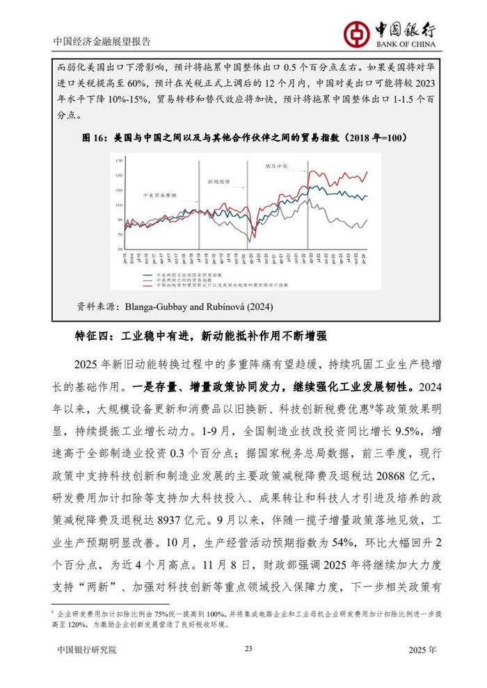 宏观政策要积极应对外部不确定性,巩固提升经济内生增长动力。财政政策可以考虑突破3%的赤字率约束,加大对创新、民生等领域支持。金融政策多重发力,推动经济持续企稳向上。房地产政策发挥存量和增量合力,共同推动市场止跌回稳。内需政策更加积极,多措并举促消费、稳投资。外贸政策积极拓展多元化市场,提升外贸企业抗冲击韧性。产业政策厚植新质生产力发展士壤,合理优化产能布局。