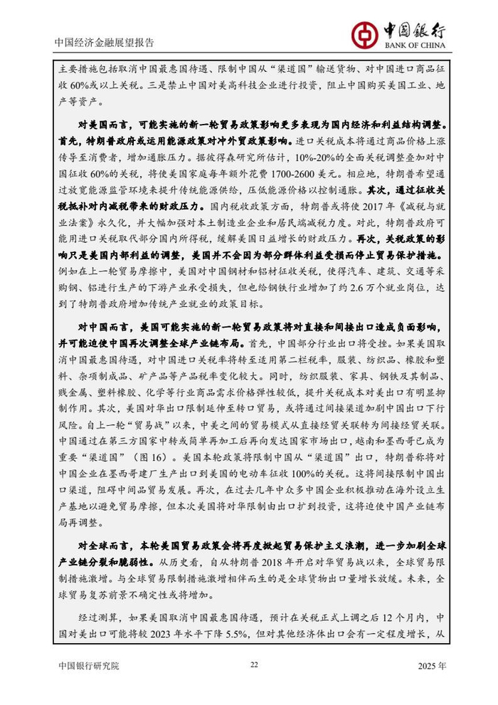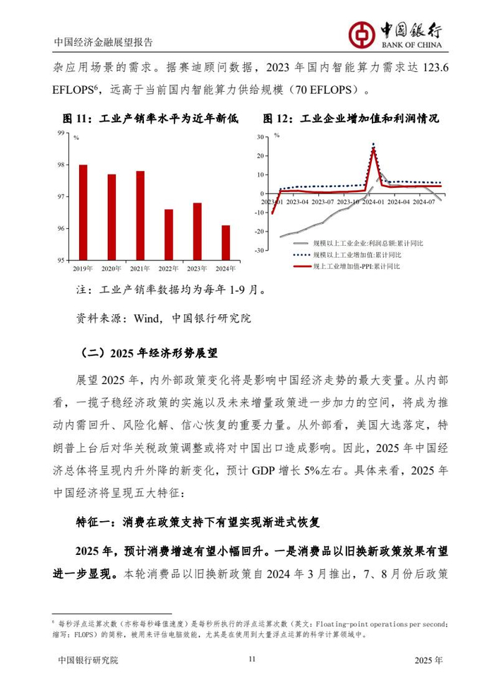 展望2025年,内外部政策变化将是影响中国经济走势的最大变量。从内部看,增量政策实施以及未来加力空间将成为经济回升的关键。从外部看,特朗普上台后对华关税政策调整将对中国出口造成影响。预计2025年GDP 增长5%左右。