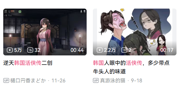 如今在B站上将“韩国”和“活侠传”一起敲进输入框,搜索引擎给出的反馈多半是“逆天”“牛头人”等关键词,就好像《活侠传》是经由韩国玩家的改造,才染上了一抹“绿色”。