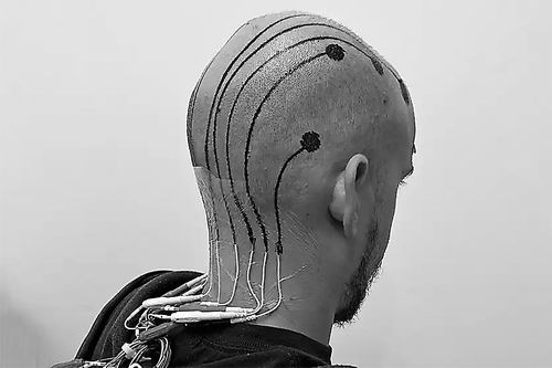 “设计与多毛皮肤兼容的材料一直是电子纹身技术面临的一个挑战。”鲁南姝说。为解决这个问题,研究人员设计了一种由导电聚合物制成的液体墨水,可以穿过毛发到达头皮,干燥后就像薄膜传感器一样,能够透过头皮捕捉大脑活动。