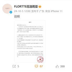 新浪财经注意到,这不是FLORTTE花洛莉亚首次因广告营销擦边事宜引发广泛关注,今年10月5日,公司曾发布官方声明称:“小蝴蝶结成膜唇蜜产品外观、亲亲泥唇泥产品色号名称存在设计不妥、审核不严的问题,我司已经整改相关产品,永不再使用存在问题的相关设计、名称及图片。”