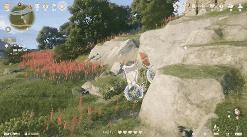 就是大部分载具都不能一键呼出,只能租用,有点难绷。而且对比人物移动的丝滑,这单车操作稍微有些不跟手,惯性大又不容易拐弯,跑图谈不上好用。