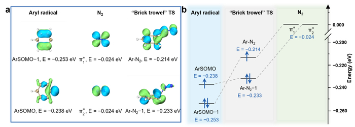 图 | 芳基自由基与氮气的反键轨道对称性、能量均匹配,可以选择性地活化氮气(来源:Chinese Journal of Catalysis)