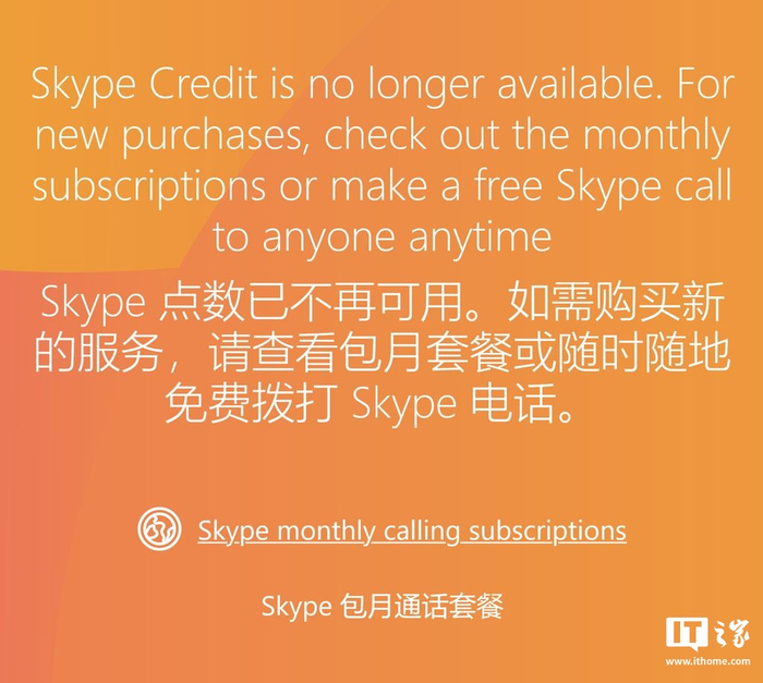 IT之家 12 月 7 日消息,科技媒体 Windows Latest 昨日(12 月 6 日)发布博文,报道称微软下线 Skype Number 和 Skype Credits 服务,官方页面已显示服务已停用。