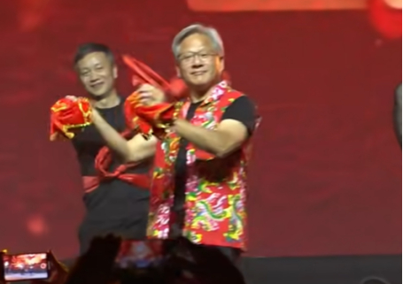 在参加英伟达中国区年会时,黄仁勋穿上东北大花袄,拿着红手绢在台上热舞。背后,是美国禁芯令导致英伟达最先进的AI芯片入华受阻。