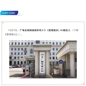 12 月 9 日消息,据国家广播电视总局网络视听节目管理司消息,12 月 7 日,广电总局网络视听司发布《管理提示(AI 魔改)》(IT之家注:下称《管理提示》)。