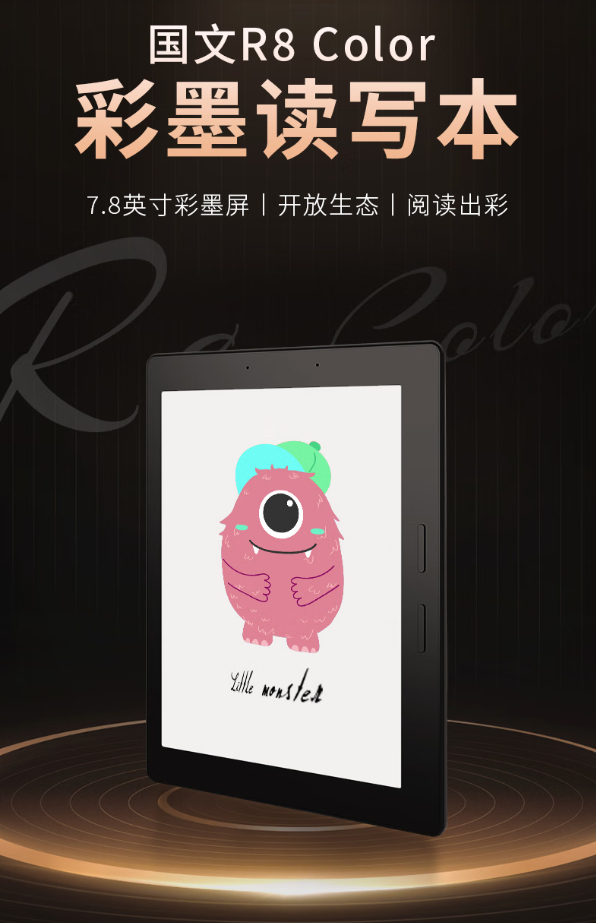 国文 R8 系列读写本配备 7.8 英寸墨水屏、拥有物理翻页按键,同时内置支持档位调节的双色温物理灯珠。读写本搭载 A55 四核处理器,预装安卓 11 系统,应用商店提供超 200+ 阅读软件。