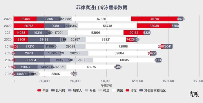 然而,随着近年来外资企业在亚洲的投资、扩张,以及本土市场需求增长推动本土工厂的迅速崛起,中国和印度不仅实现了冷冻薯条的本地化供应,还逐步在亚洲市场占据一席之地,成为新兴薯条出口大国。