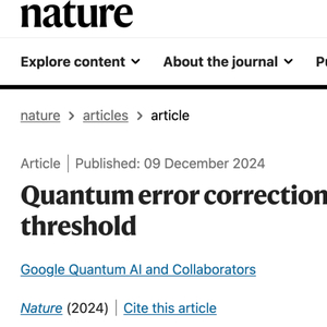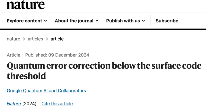 Willow不仅仅是速度的胜利,更取得了量子计算领域决定性的技术突破——随着量子比特数量的增加,这款芯片的误差也呈指数级下降。这种精度提升的速率超出了一个关键阈值。这意味着,曾困扰量子计算近30年的纠错问题,终于迎来曙光。谷歌量子团队的最新研究,已经刊登在今天的Nature期刊上。