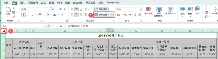 方法也很简单,你只需要点击【合并后居中】,就可以取消所有的合并单元格啦!