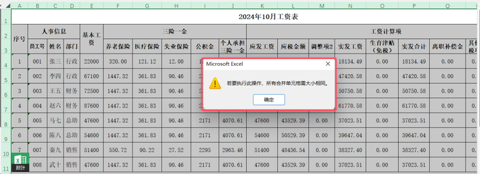 当有合并单元格存在的话,要求合并单元格大小相同。