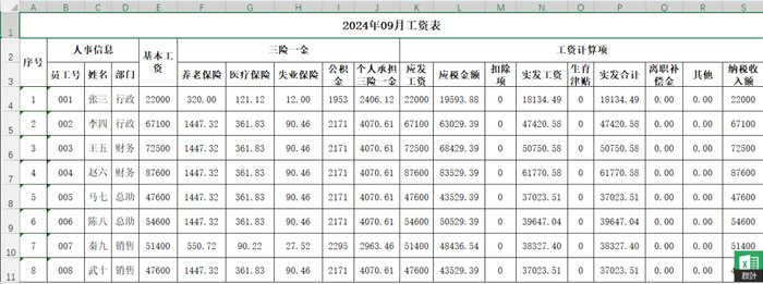下图是一张工资表: