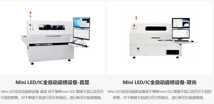 公司控股子公司微组半导体专注于全自动微米级高精度微组装设备、Mini LED 返修设备的研发,是一家集设计、生产和销售、服务为一体的半导体微组装设备专业制造商,其产品主要有 MiniLED 产品线和封装设备产品线,可适用于 IC 集成电路封装、Mini LED/MicroLED 返修、高速光模块的组装、射频器件、微波器件、MEMS 传感器等器件的封装,可实现部分国产设备替代进口设备。