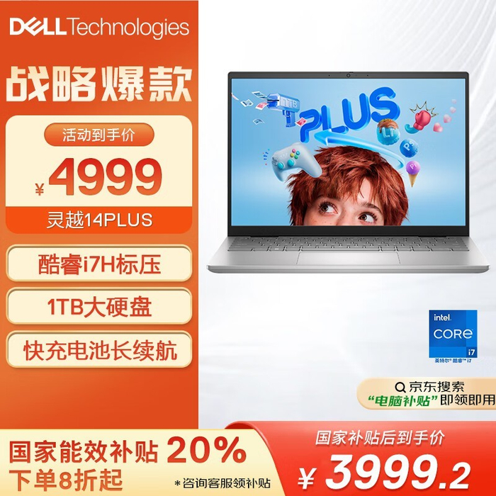 戴尔 灵越PLUS 14 7430 十三代酷睿版轻薄笔记本电脑仅售3999元