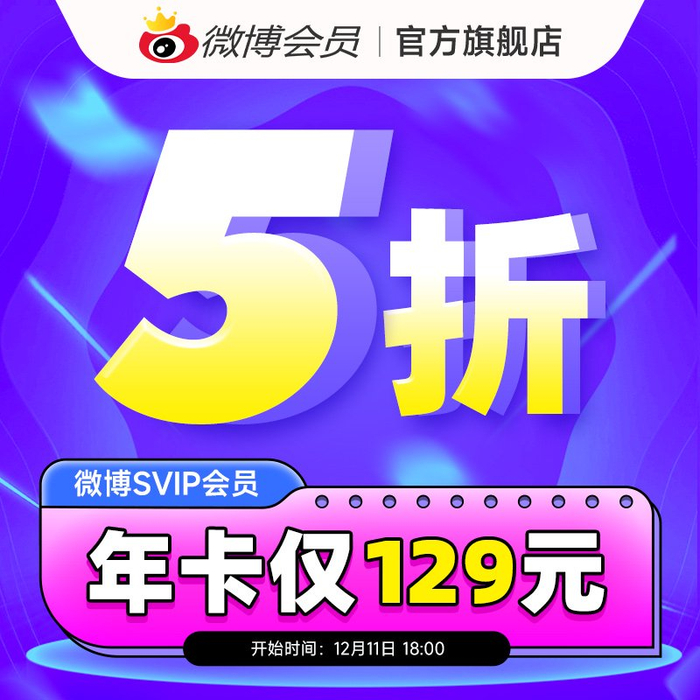微博会员 5 折狂促:VIP 年卡 60 元、SVIP 年卡 129 元