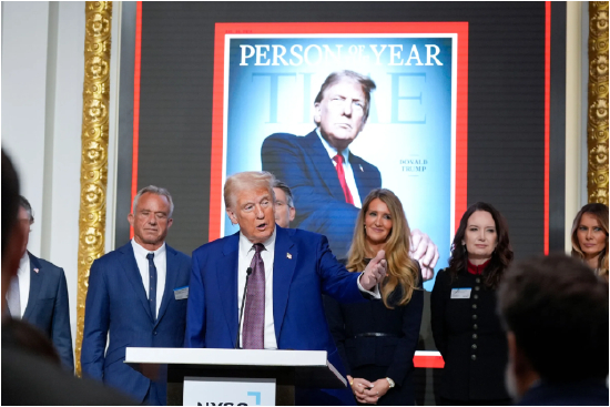 就在上周,特朗普还当选了《时代周刊》的年度风云人物,这也是他继2016年之后再次当选。当选年度风云人物之后,特朗普上周四来到了纽约证券交易所主持敲钟仪式,为自己当选进行胜利巡游。