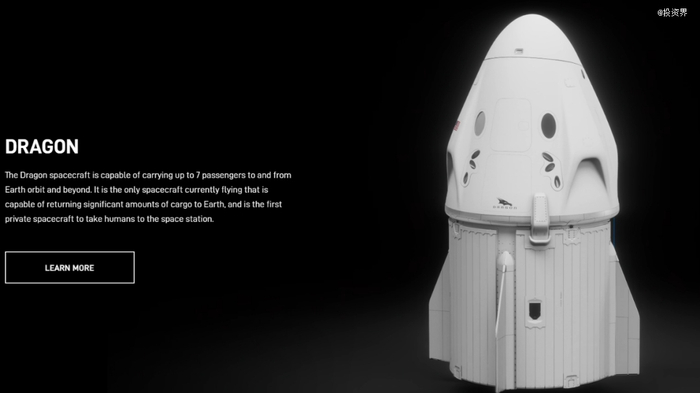 SpaceX的“龙飞船”也为人熟知,这是世界上第一艘由私人公司研发的航天飞船。2010年12月8日试飞成功,2012年10月首次向国际空间站运送重达455公斤的货物。2021年9月,龙飞船第一次将四名普通人送入太空,用11年的时间完成了由货运向载人的转变。