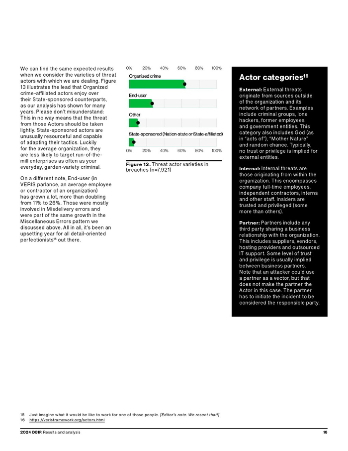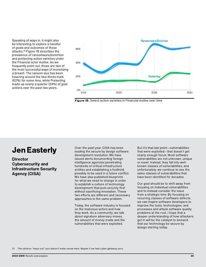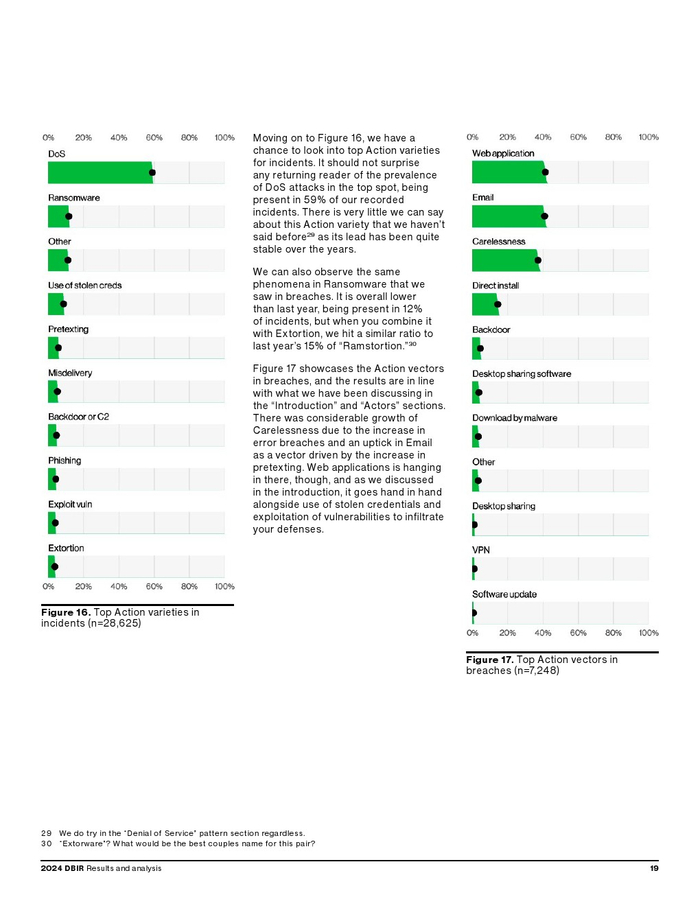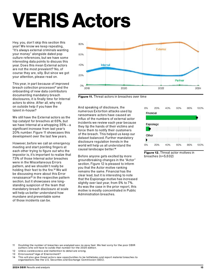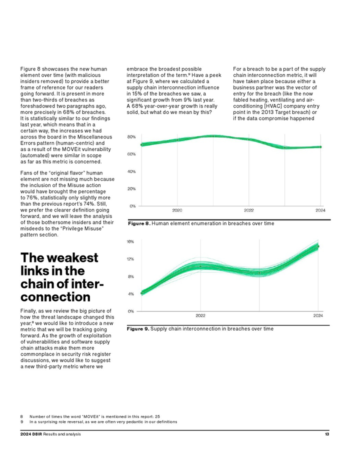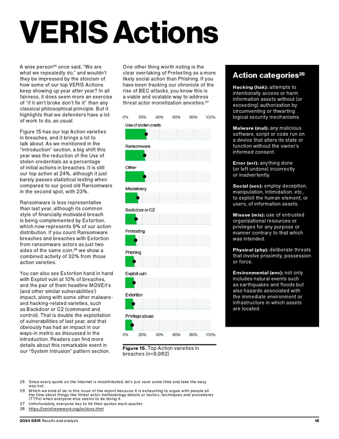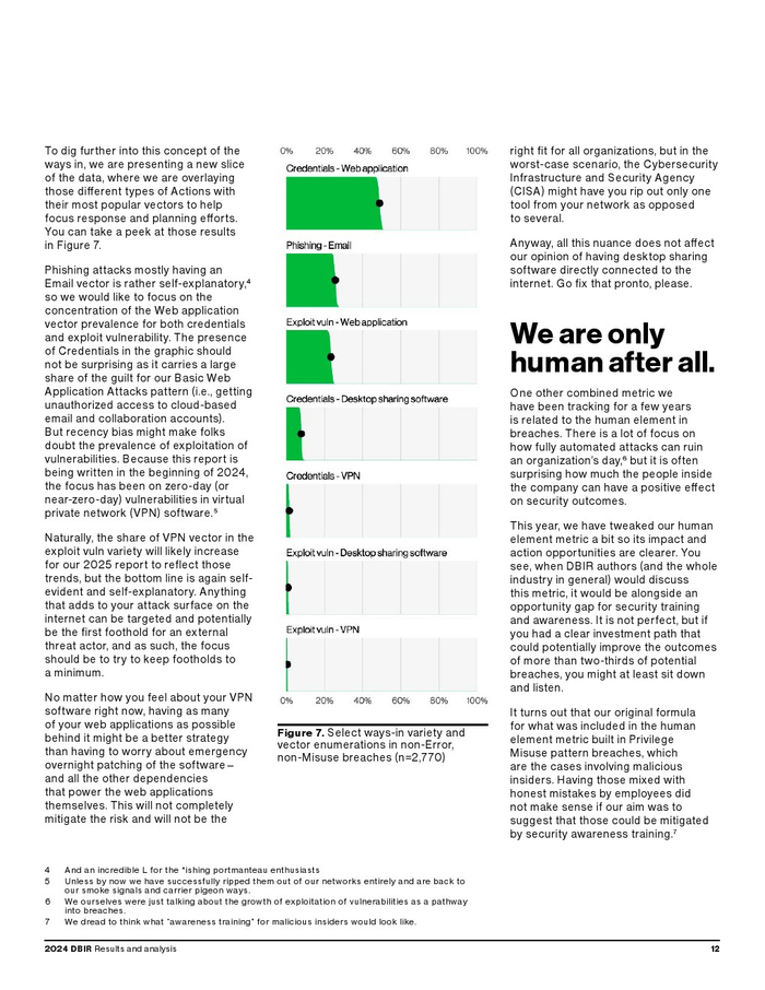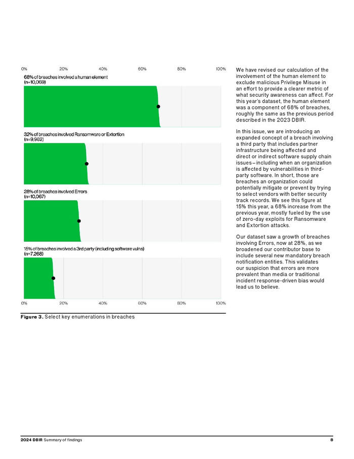 报告已经修改了对人为因素的计算,以排除恶意的特权滥用,以提供一个更清晰的安全意识可能影响的指标。在今年的数据集中,人为因素占了68%的违规行为。