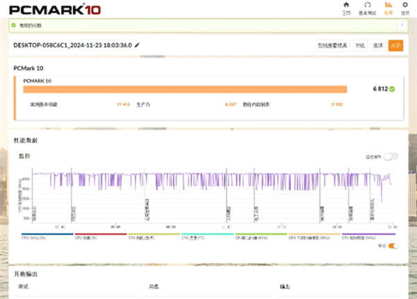 针对办公性能,我们使用了PCMark 10的基准测试,取得了6812分的优秀成绩,用来办公、学习可以说是绰绰有余了。