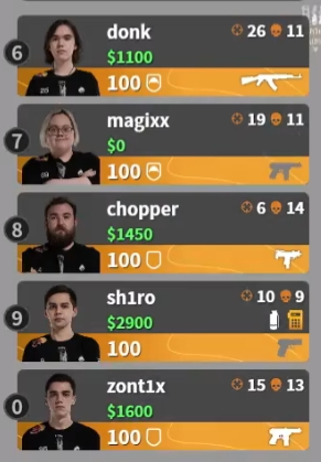 上海Major半决赛,Spirit在淘汰赛击败了德国强队MOUZ,但MOUZ也让Spirit喝了一壶,用道具把donk打懵了。那局donk的战绩为6杀17死,是本次Major上唯一一次评分(Rating)低于1的对局,可以说惨不忍睹。