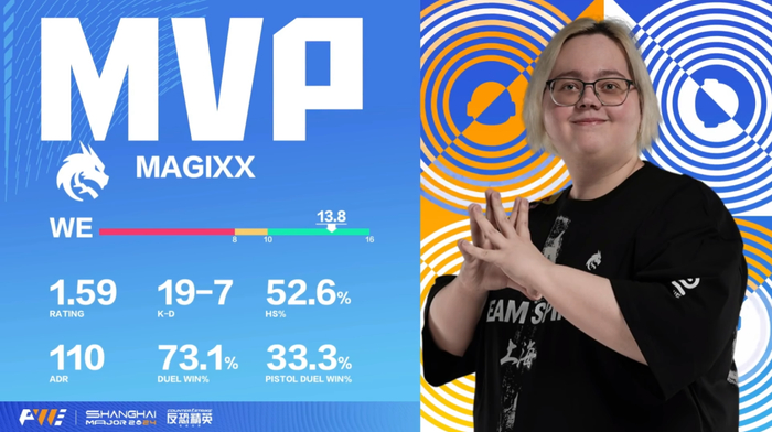 绿叶和鲜花的紧密配合结出了丰厚的果实。回到上海Major半决赛,由于缺少MOUZ的有效针对,magixx顶住压力打出高交换比,一手将donk和Spirit送进总决赛舞台。