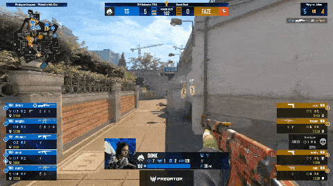这些战术无不体现出了对donk的恐惧和尊重。首先要避免与之正面交锋,就以这次上海Major举例,即便是在donk队友全灭、FaZe全员存活的1V5大优势残局,FaZe也没有一名队员敢主动探头和donk对枪。