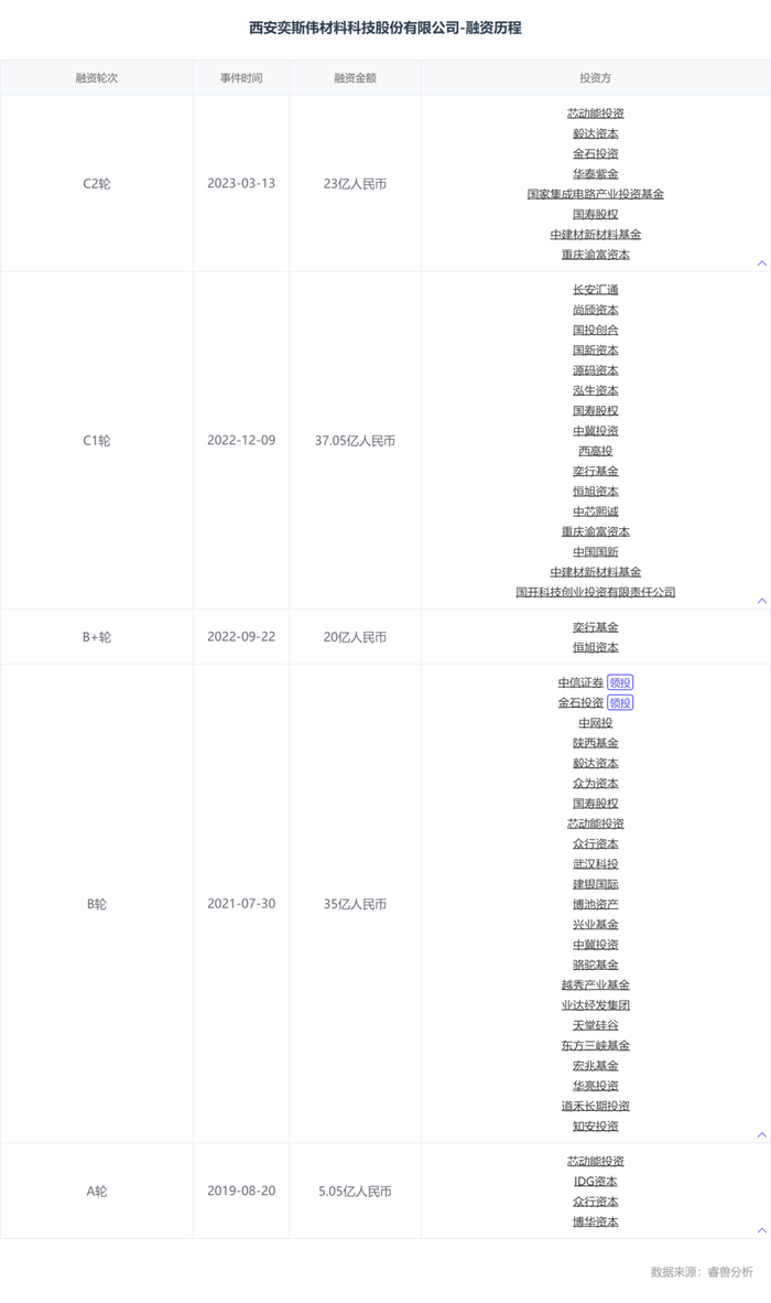 具体来看,2021年7月,公司完成了超过30亿元人民币的B轮融资,由中信证券投资和金石投资联合领投,中网投、陕西民营基金、毅达资本、众为资本、国寿股权等机构参与跟投。