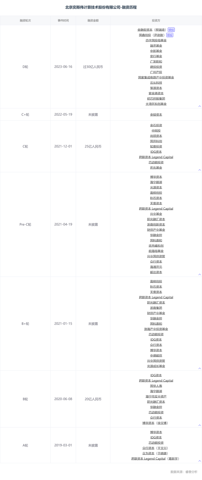 睿兽分析显示,自成立以来,奕斯伟计算已经完成了7轮融资,累计融资额达数十亿,吸引了众多顶尖投资者的关注,现已成为一家超级独角兽企业。