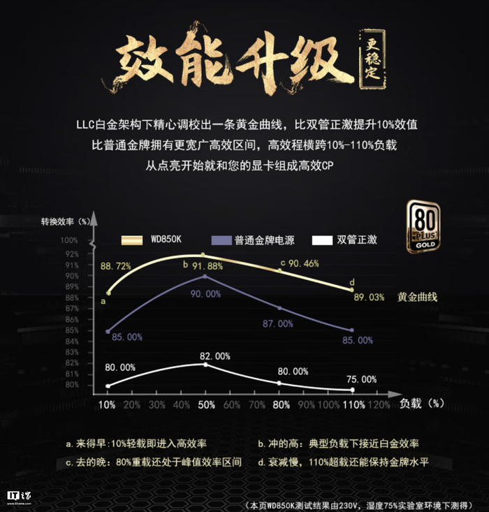 此外,该电源支持宽幅电压,支持 +12V 电流 (70.8A) 输出(99% 输出占比),支持 LLC 谐振 & SR 同步整流 & DC-DC 转换。