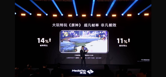 接着再看《原神》,30 分钟60 帧极高画质,搭载天玑 8400 帧率同比上一代提升 14%,能效提升 11%,做到了既有高性能,又有长续航。