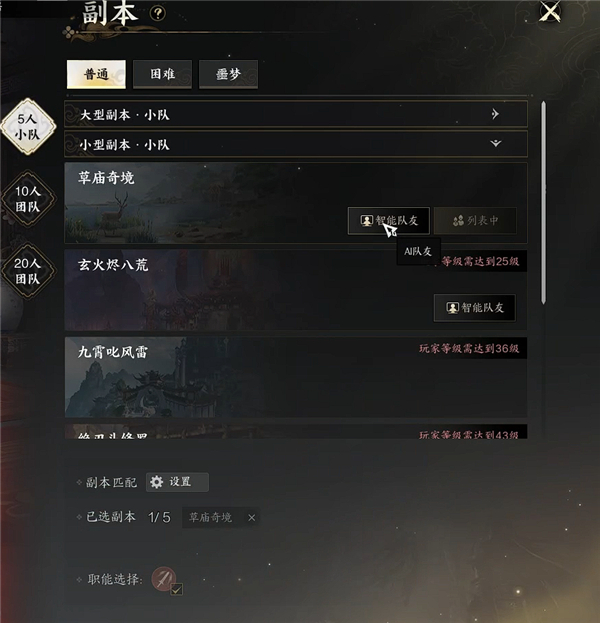 我第一次做任务副本的时候匹配了一下,结果等了 40 秒也没等到队友,最后选择了 “ 智能队友 ” 。说白了,就是和电脑一起下副本,特别适合独狼玩家以及实在等不到队友的玩家。