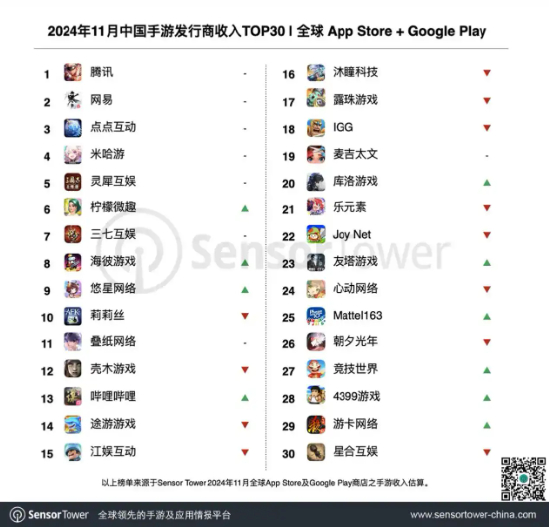 可以说,无论是《原神》亦或者《绝区零》,都在2024年出现了诸多问题,进而导致米哈游收入有所降低。尽管9月份,米哈游通过活动运营成功超过世纪华通成为第三,但这一优势并未能保持,因为对手同样在加速前进,在10月和11月,米哈游再次让出中国游戏厂商第三的宝座。