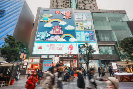 近年来,名创优品通过品牌升级与业态创新,持续发力首发经济。从MINISO LAND到各个IP快闪、主题店,名创优品用丰富的业态创意不断刷新消费者的认知。名创优品选择在成都春熙路落地MINISO LAND成都壹号店,正是看中了这座城市在潮流文化与消费力方面的强大影响力。