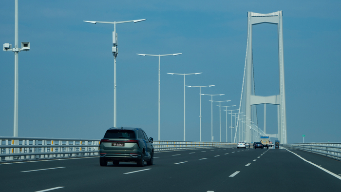 元戎启行测试车在重庆高架桥行驶