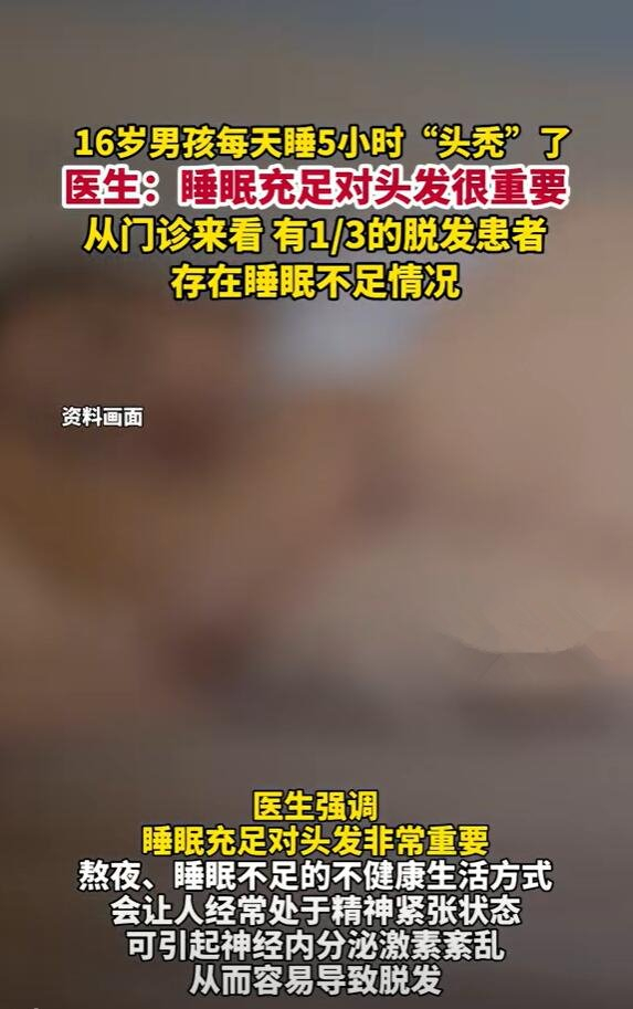 12月28日消息,微博话题“16岁男孩每天只睡5小时头先秃了”引发热议。