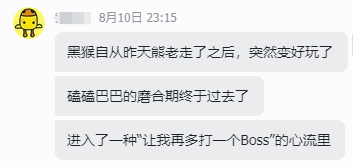 这对缺乏地图指引,隐藏要素很多的《黑神话》来说尤为重要。现在网上有个流行的说法是,“又多玩了五毛钱”,意思是找到了游戏中的一些额外亮点,让游戏买得更值了。按照这个维度来说,我在游戏发售前的《黑神话》体验,可能也就是 “玩了150多块钱”,时间紧任务重,战斗设计不来不及深入研究,不少Boss战靠吃苦硬熬,总之一把辛酸泪。