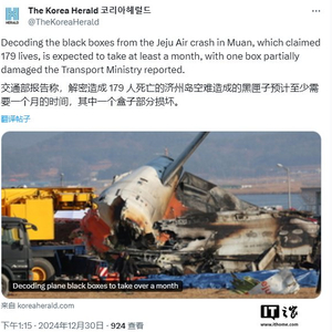 韩国济州航空失事客机“黑匣子”已开始进行数据分析,解读或需数月