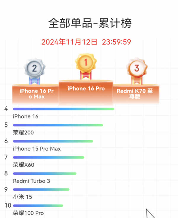 自今年“双十一”以来,iPhone 16 Pro系列凭借高规格与优越性能,成为消费者换新手机的热门选择。根据电商平台数据显示,iPhone 16 Pro和iPhone 16 Pro Max分别占据了手机单品累计销量榜的冠亚军。促销结束后,各地“国补”政策的推出又接力助推,进一步降低了换新的门槛,为更多消费者选择iPhone 16 Pro系列提供了强大动力。