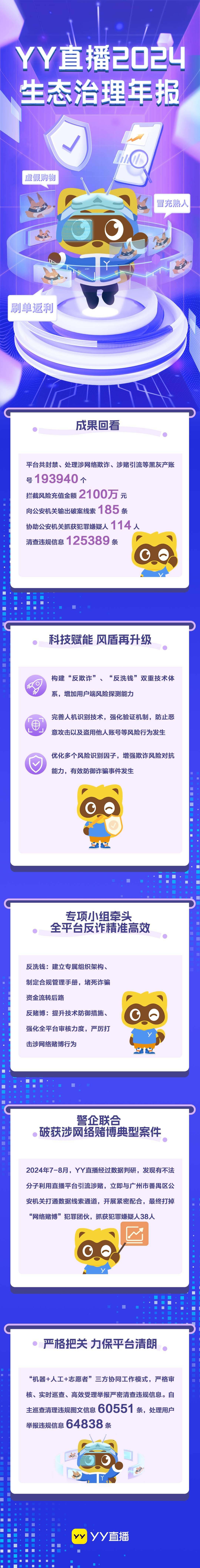 YY直播发布2024年度生态治理报告 封禁黑灰产账号193940个
