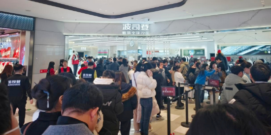 不久前,北京有商场年末促销,部分商品拼单后到手可以实现57折,其中波司登门店则成为商场中最热打卡地,店外S形排队区挤满了人。