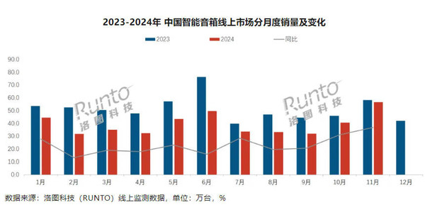 【CNMO科技消息】近日,洛图科技(RUNTO)发布的《中国智能音箱零售市场月度追踪》报告显示,2024年11月,中国智能音箱线上市场在经历连续衰退后迎来小反弹,销量微降2.6%至56.8万台,但销额却同比增长8.1%至1.5亿元。其中,小米智能音箱凭借出色的市场表现,独占60%以上的市场份额,力压百度和天猫精灵。