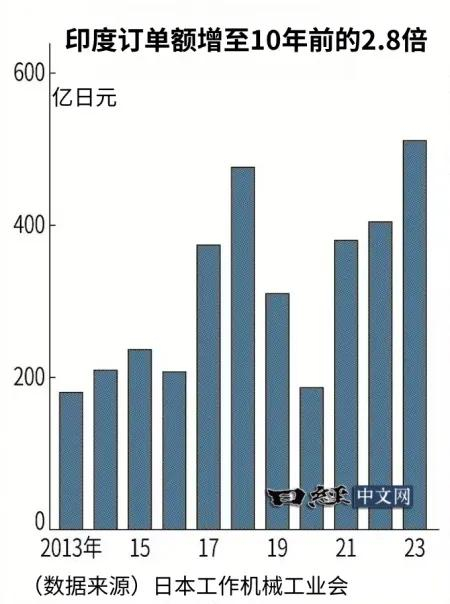 2024年1~10月受美欧低迷的影响,海外订单额同比仅增长2%,但印度订单增长32%,达到536亿日元,强劲势头显得突出。