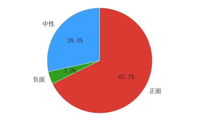 截止1月3日,此事件匹配的到全网舆情信息总量为1574条,正面信息1065条,占比67.7%,负面信息61条,占比3.9%,中性信息448条,占比28.4%,事件舆论呈现出显著正面的倾向。