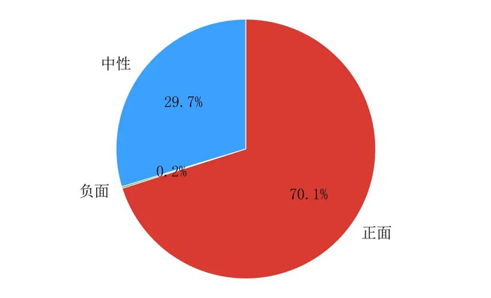 截止1月3日,此事件匹配的到全网舆情信息总量为1084条,正面信息760条,占比70.1%,负面信息2条,占比0.2%,中性信息322条,占比29.7%,事件舆论呈现出显著正面的倾向。